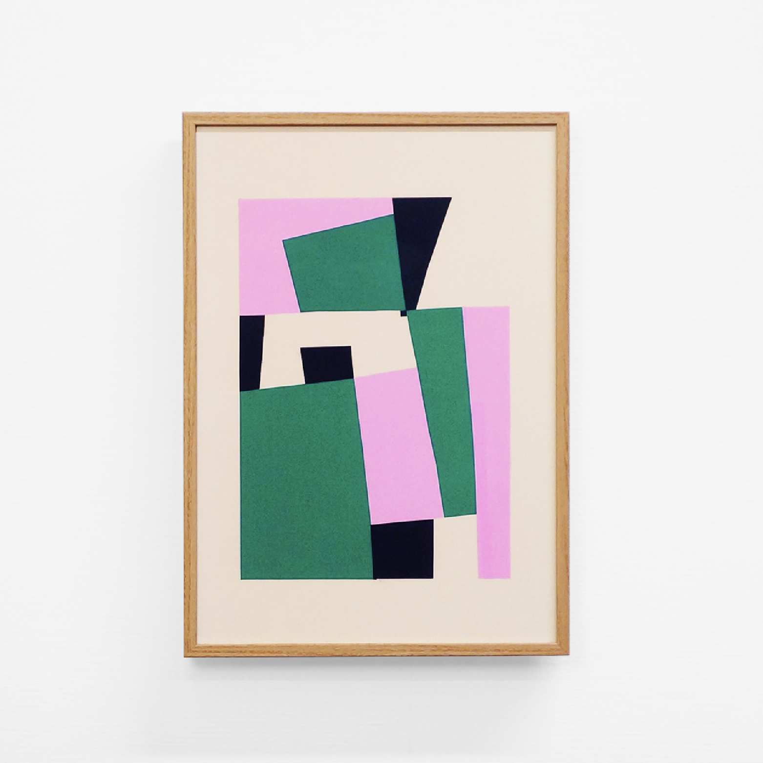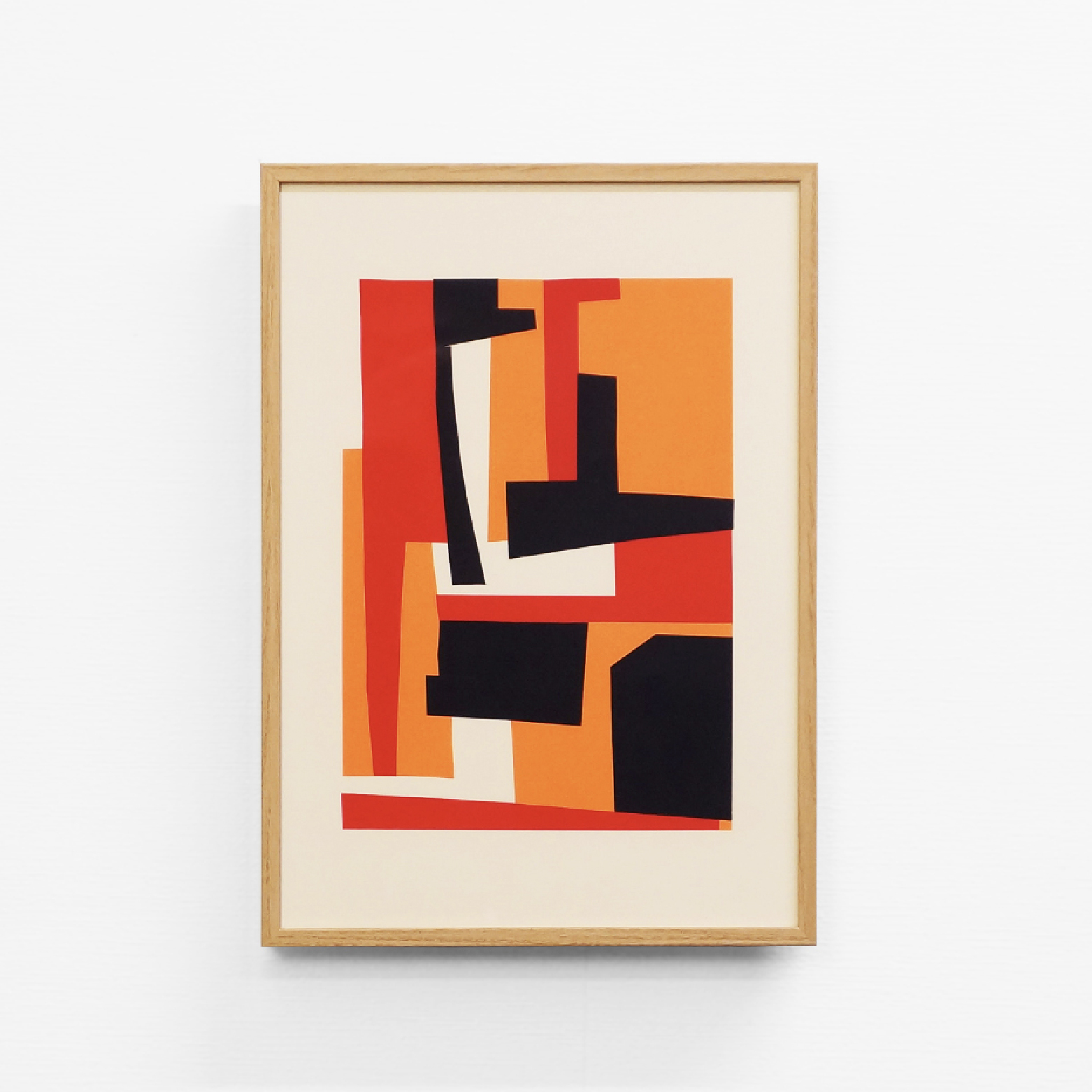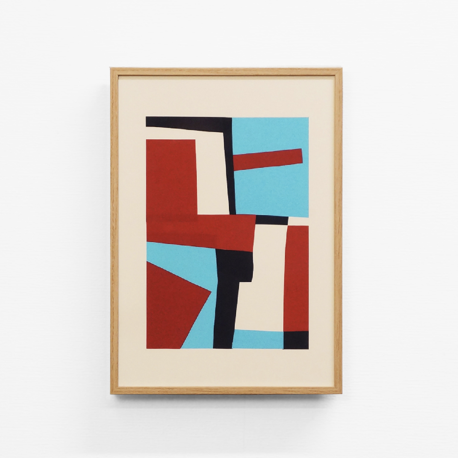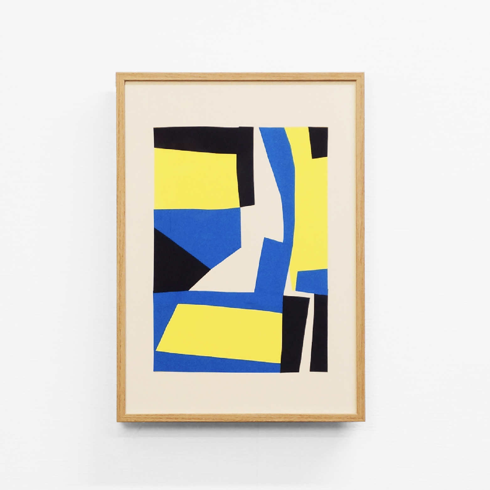 折り紙をケント紙に貼り合わせた切り絵作品を、紙の質感や貼り合わせた重なり、切れ目を活かしながらプリント作品に落とし込みました。飾りやすいサイズ感とあたたかみのある作品性は、どんな空間にも心地よく馴染みます。かたちの重なりから何を連想するか、どこに飾りたいか、作品が「はなす」きっかけとなり、暮らしを明るく彩ることを願っています。
