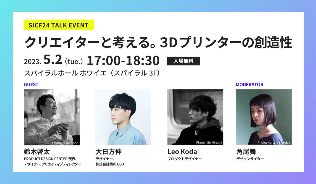 SICF24 TALK EVENT クリエイターと考える。3Dプリンターの創造性 2023.05.02(Tue)