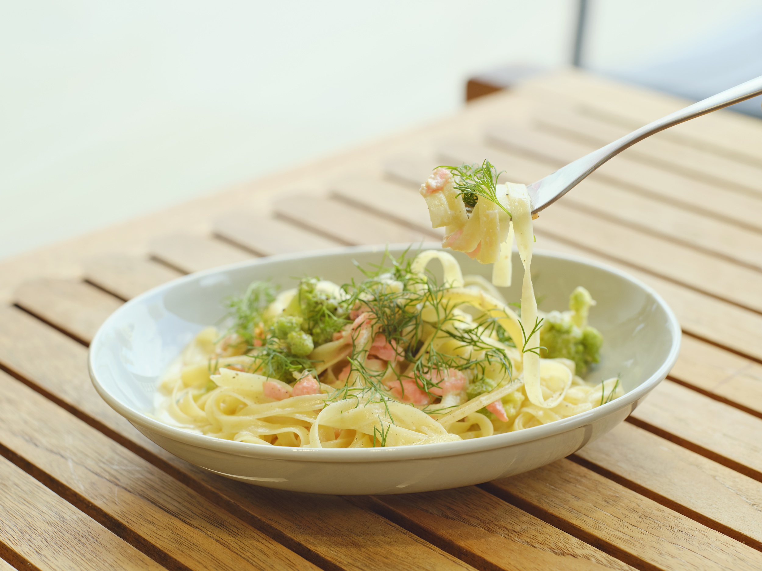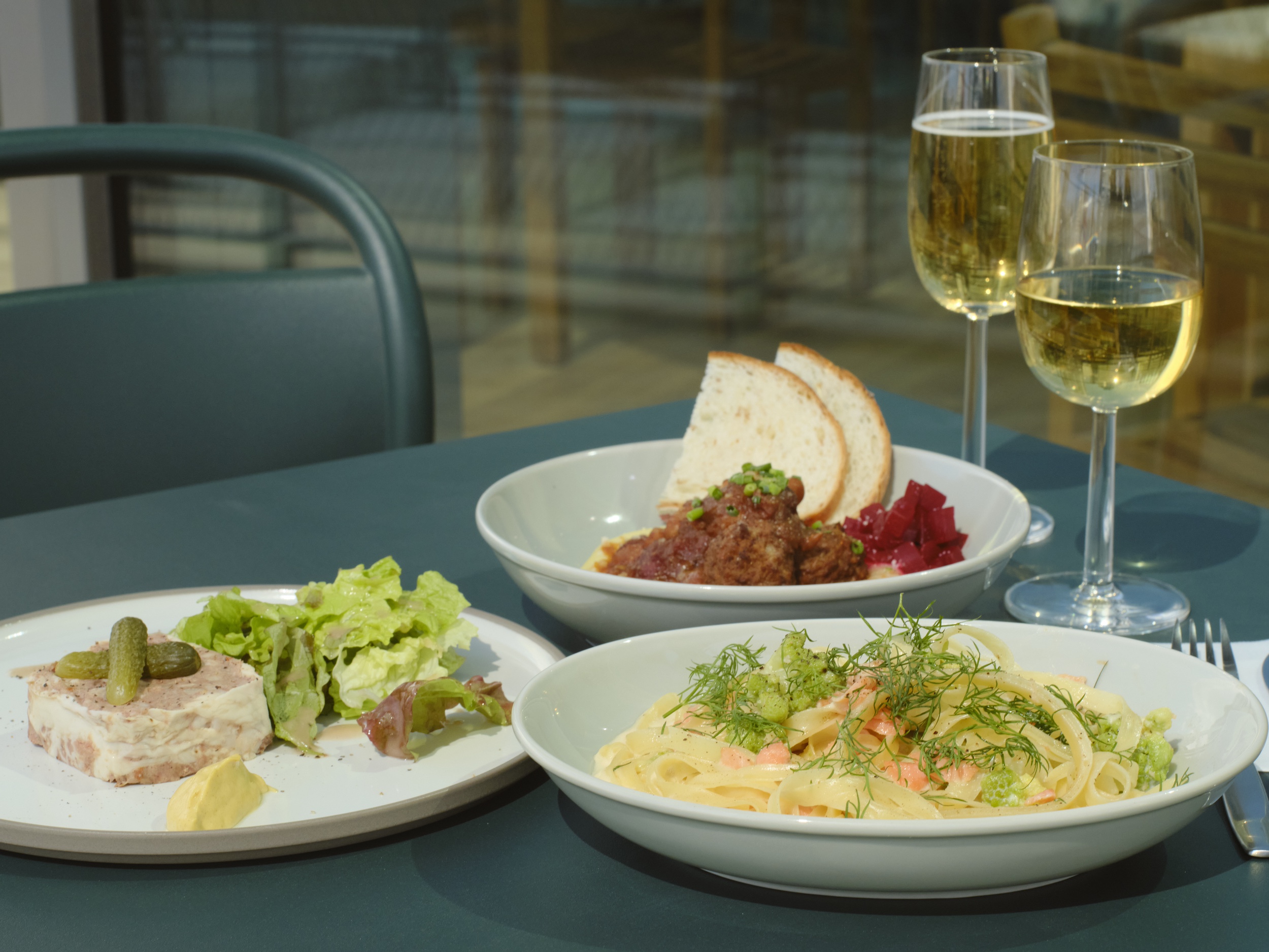 テラス席からは、行き交う電車を眺めることができます。北欧家具に囲まれて 、ゆったり文化の余韻を楽しめる店内では、北欧風の浅煎りオリジナルブレンドコーヒーや、青山の「Spiral Café」で人気のタパス(小皿料理)、肉料理やパスタなどを提供。