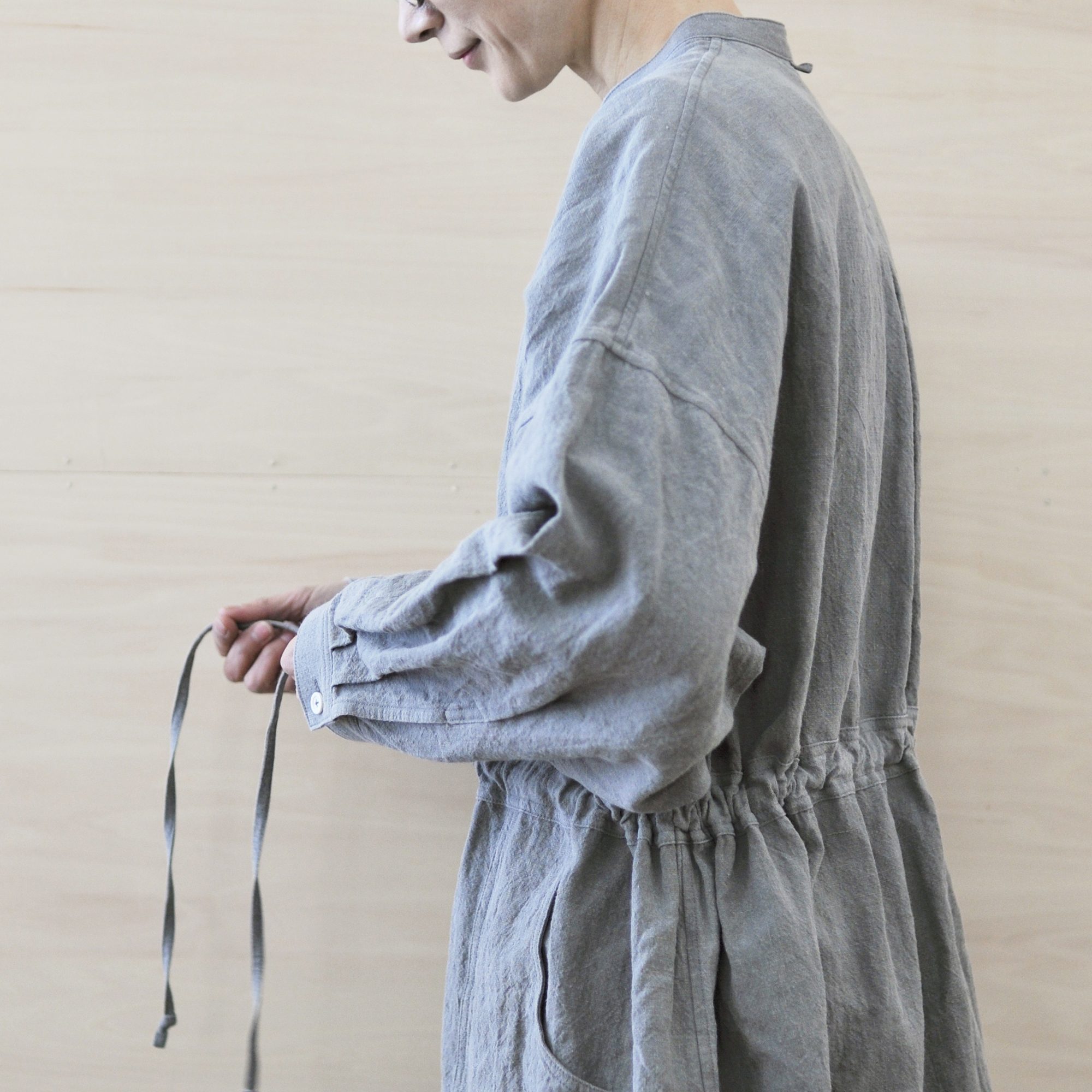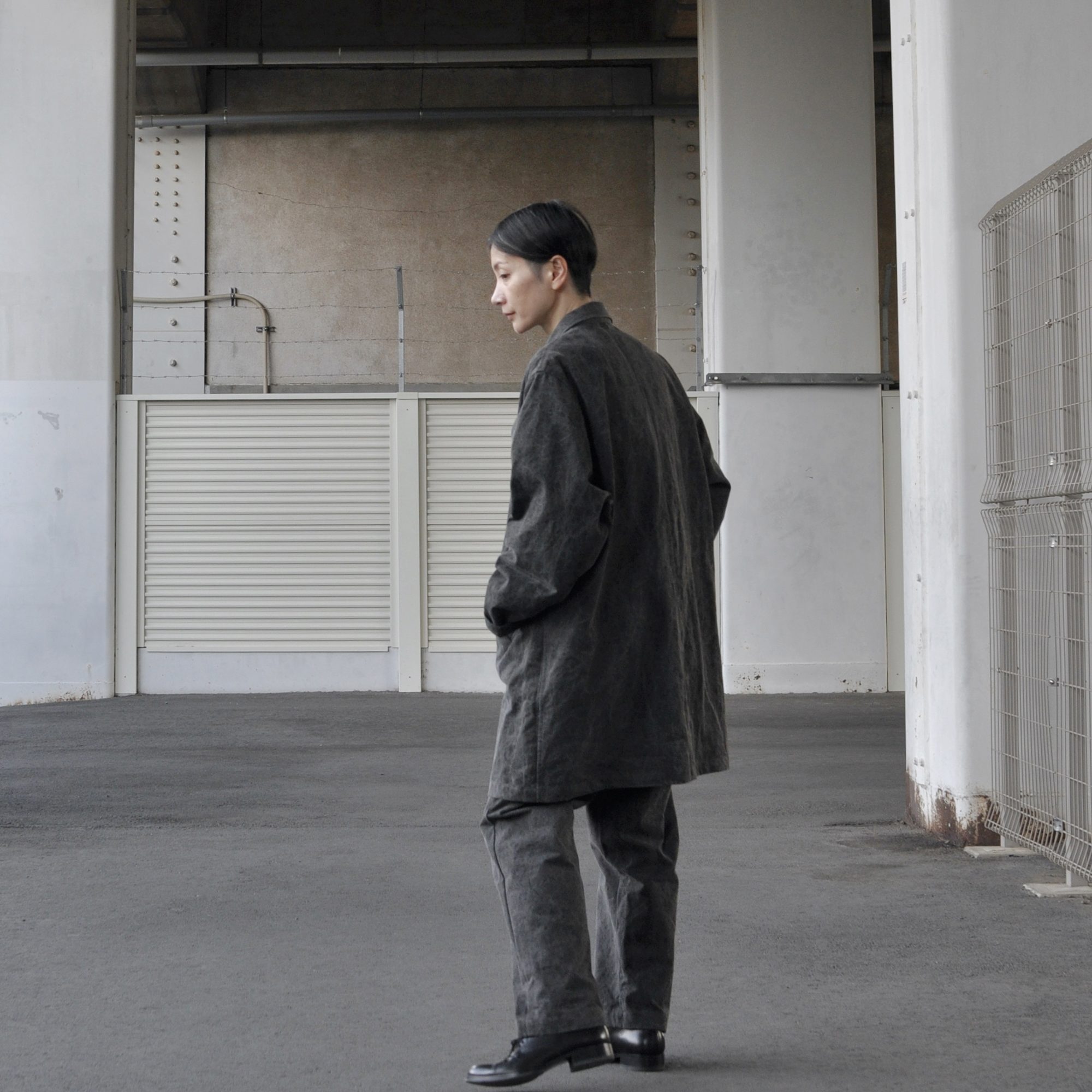 シロ. からは 備長炭の墨色を纏う服を中心にご紹介いたします。 備長炭で染め上げられた生地は、やわらかな墨色と、ほのかな揺らぎを宿した質感が魅力です。