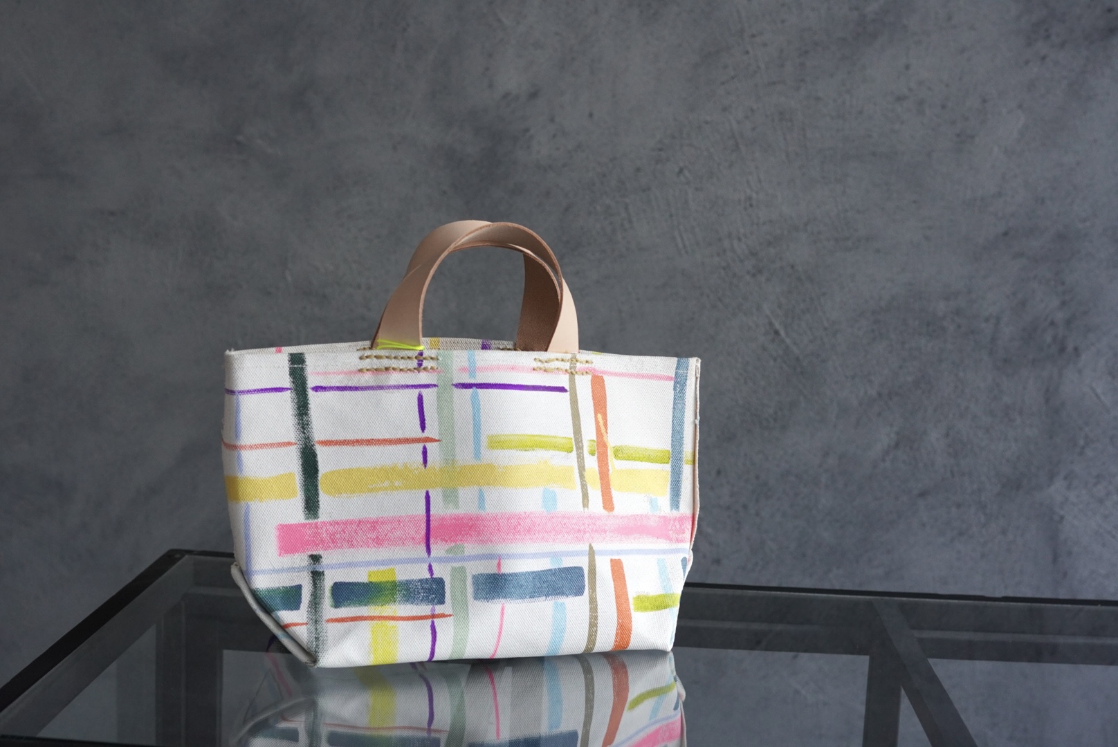 ペイントやシルクスクリーンを施した帆布でカバンを制作。