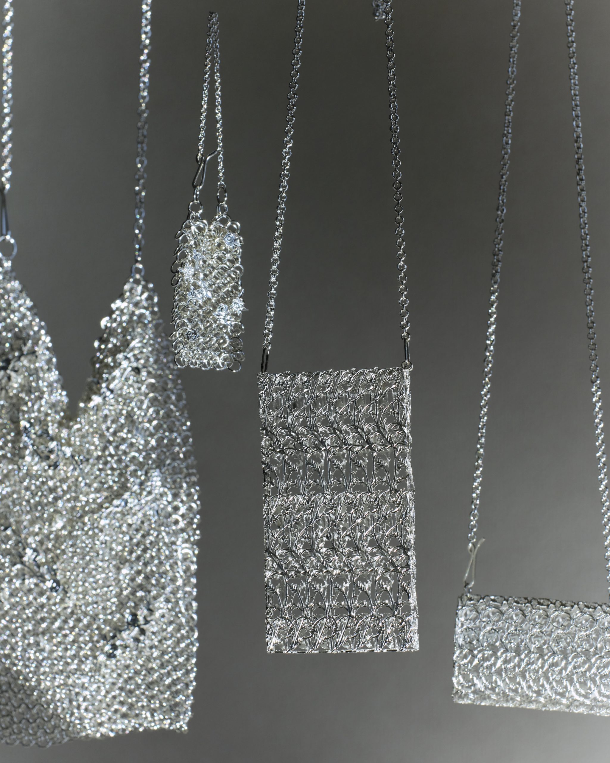 バッグの中⾝は、持ち主が好きなものを選ぶことができ、ジュエリーとして⾝につけることが可能になる。