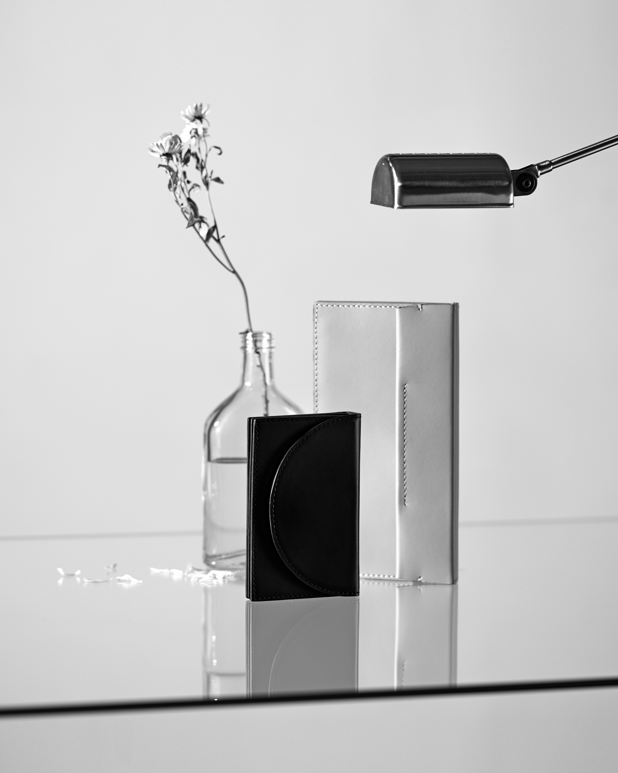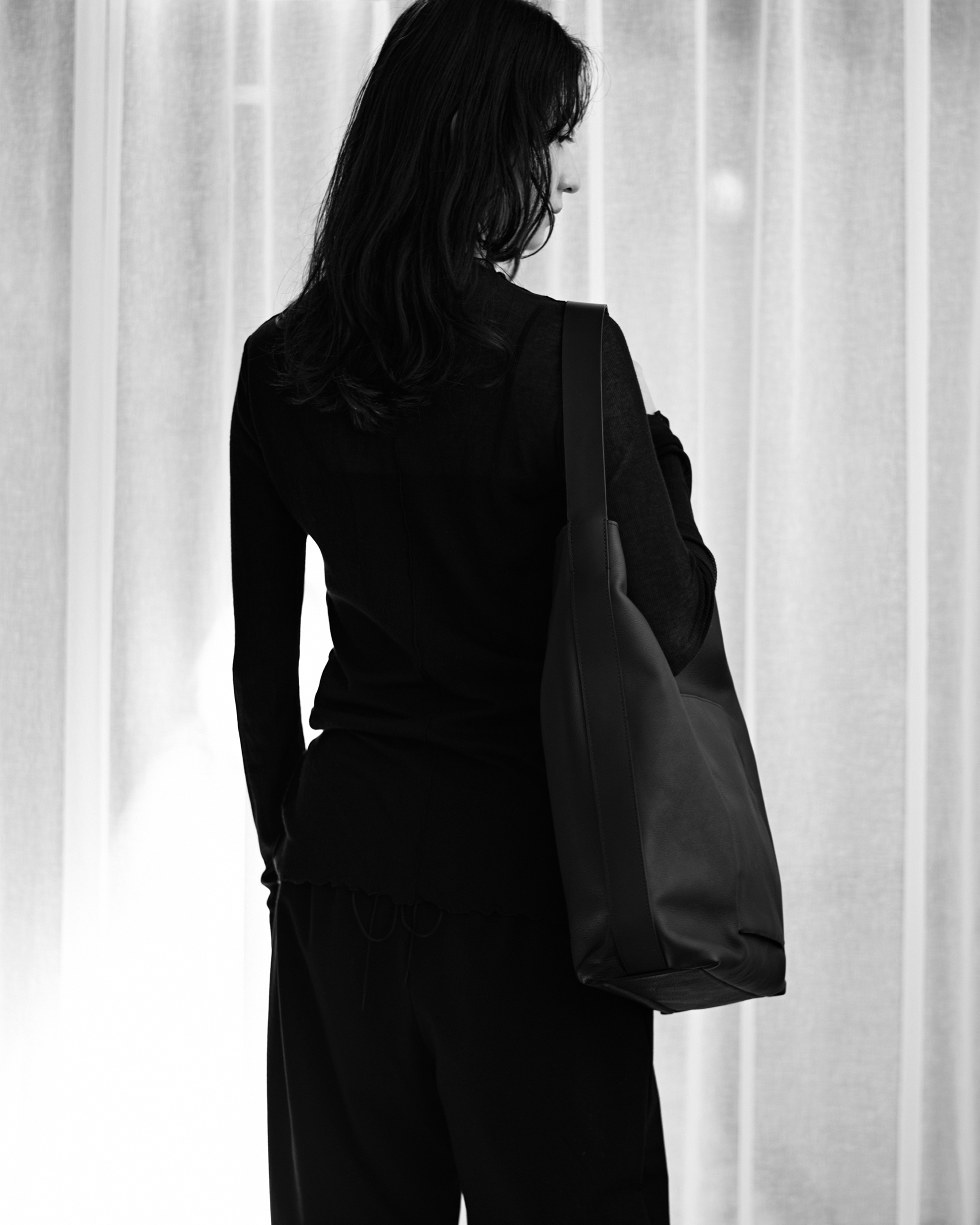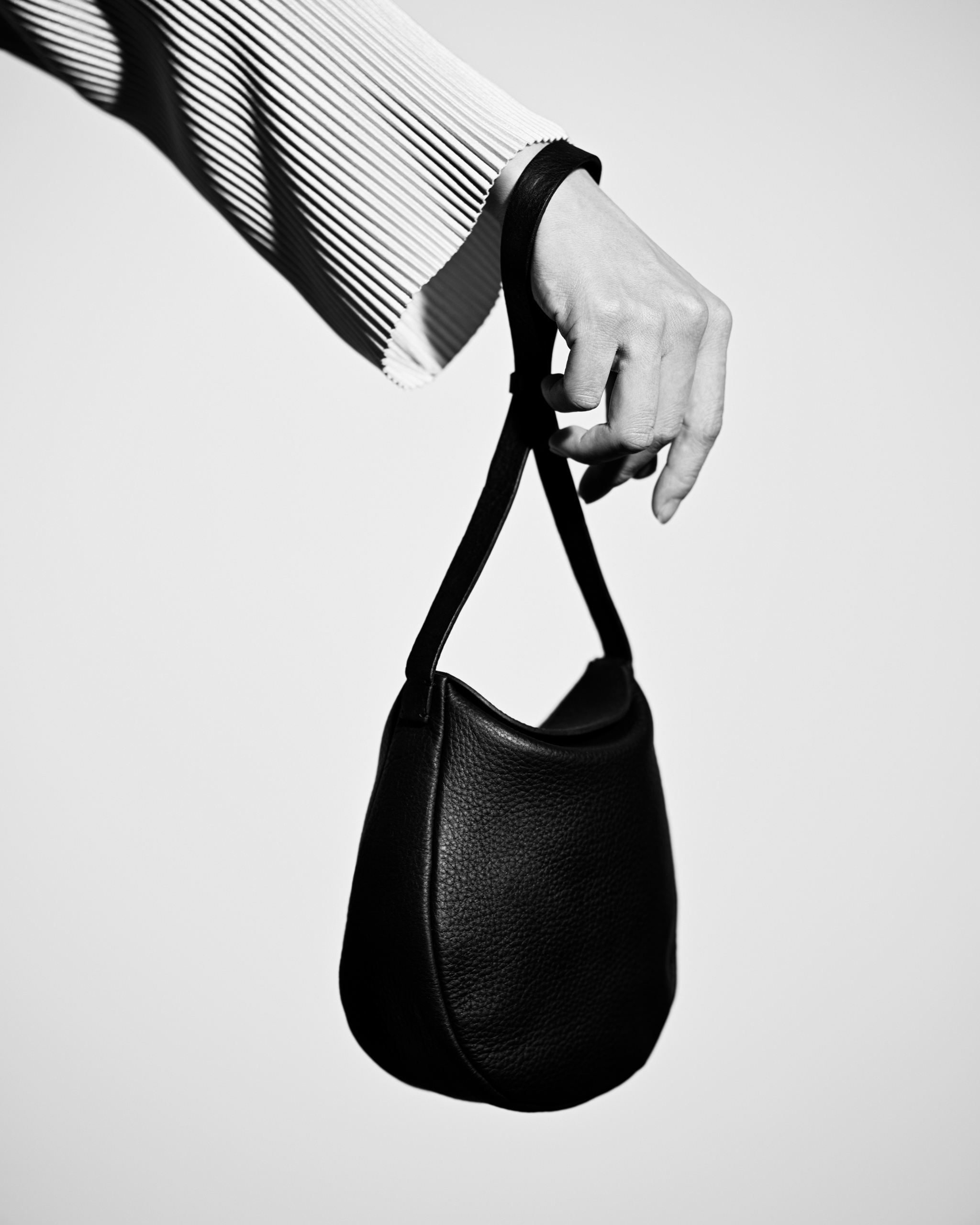 四角いフォルムとしなやかなレザーによる、緊張感とやわらかさを併せ持つバッグ。