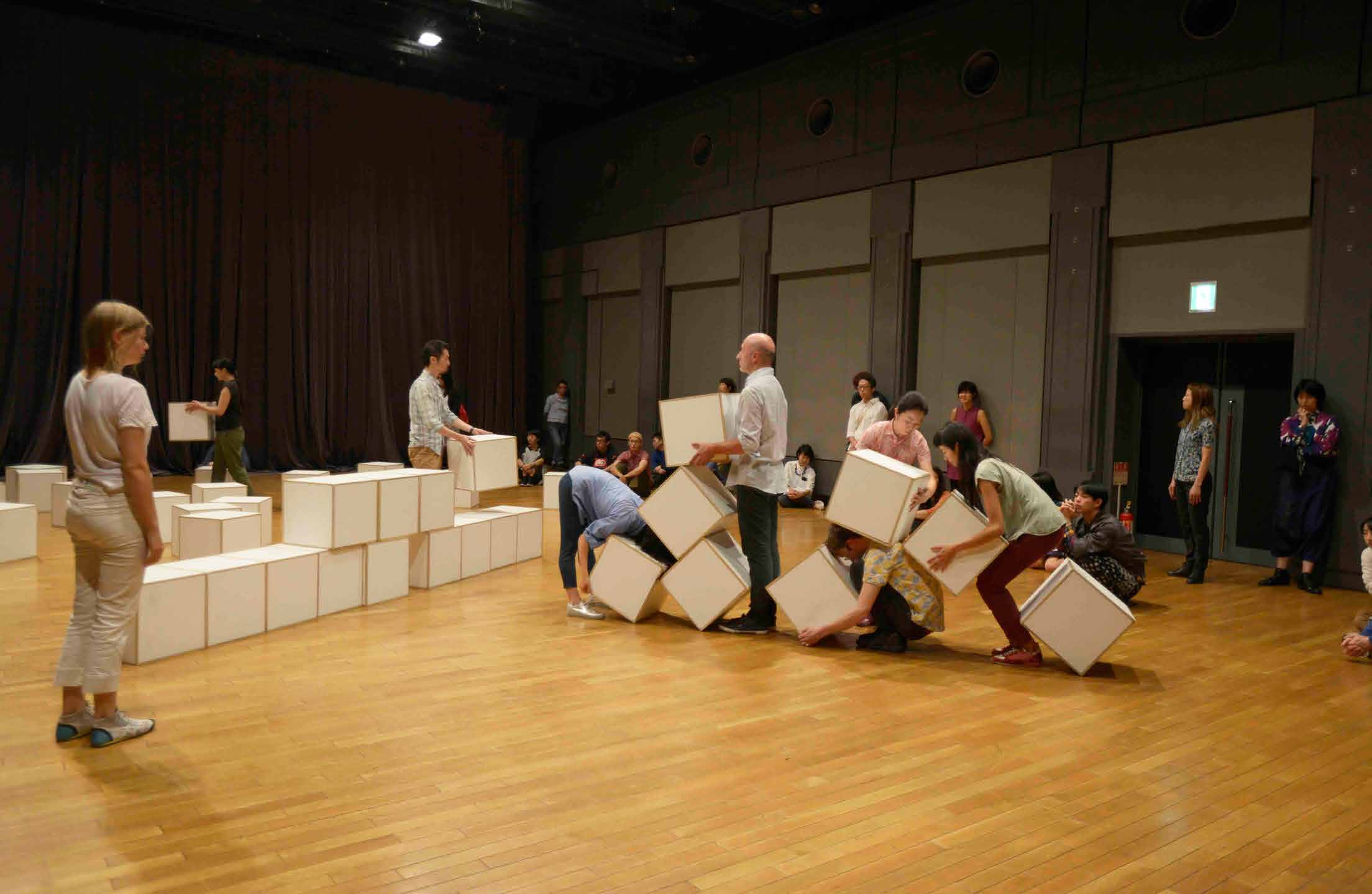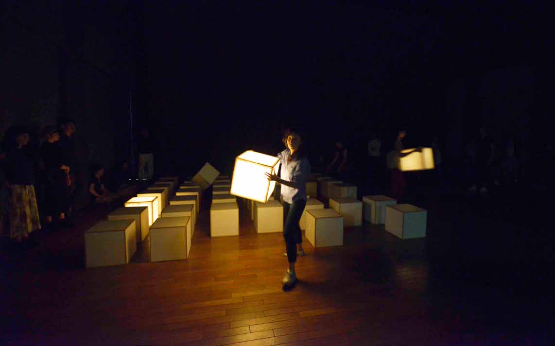 参加者ひとりひとりが自分の位置や見方を主観的に選択することができ、知覚が開かれ、ありふれた日常を別のイメージへと読み替えるパフォーマンスを展開しました。