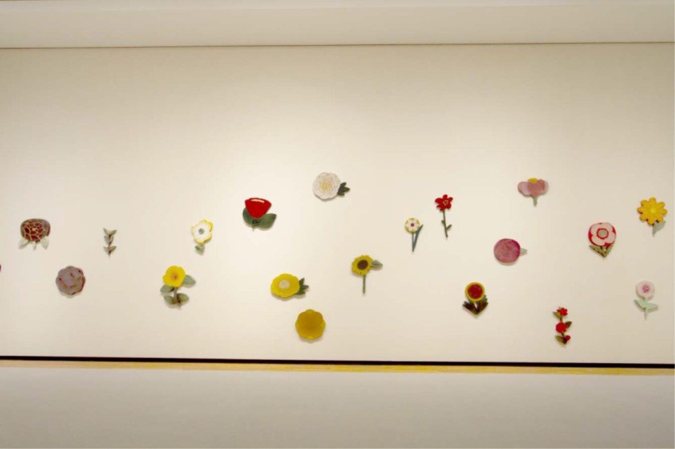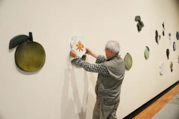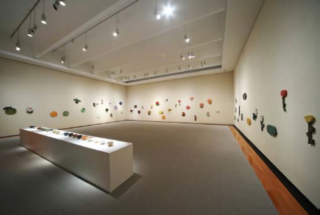 会場では、石本が “無限の可能性を感じる”と話す、花をモチーフとした陶のレリーフとテキスタイルを中心に、数十点におよぶ、新作の陶作品を加えて展開。また、地元の有志による「石本藤雄展実行委員会」主催により、メイン会場である愛媛県美術館に加え、2カ所のスペースで展示を行いました。