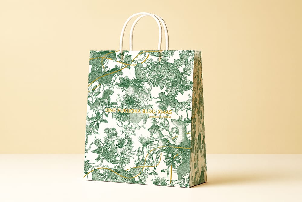 ONE FUKUOKA BLDG. Xmas Market でお買い上げいただいた商品は、村山 大明さんのオリジナルショッパーにお入れします。