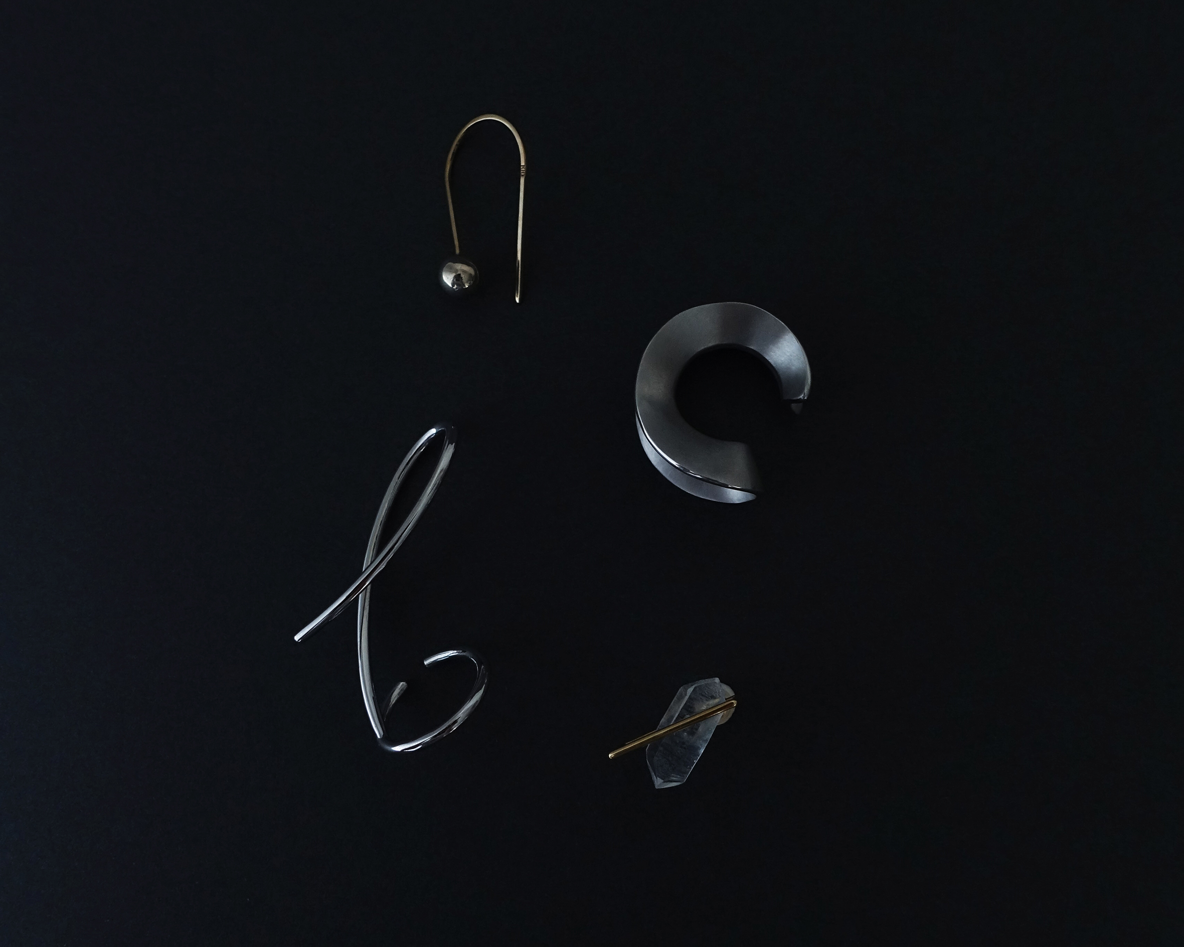 少ない要素の中に造形の妙が光るrevie objectsのジュエリーは、一見するとオブジェのようでありながら、身につけた瞬間にその人の魅力を引き立てる特別な存在感を持っています。
