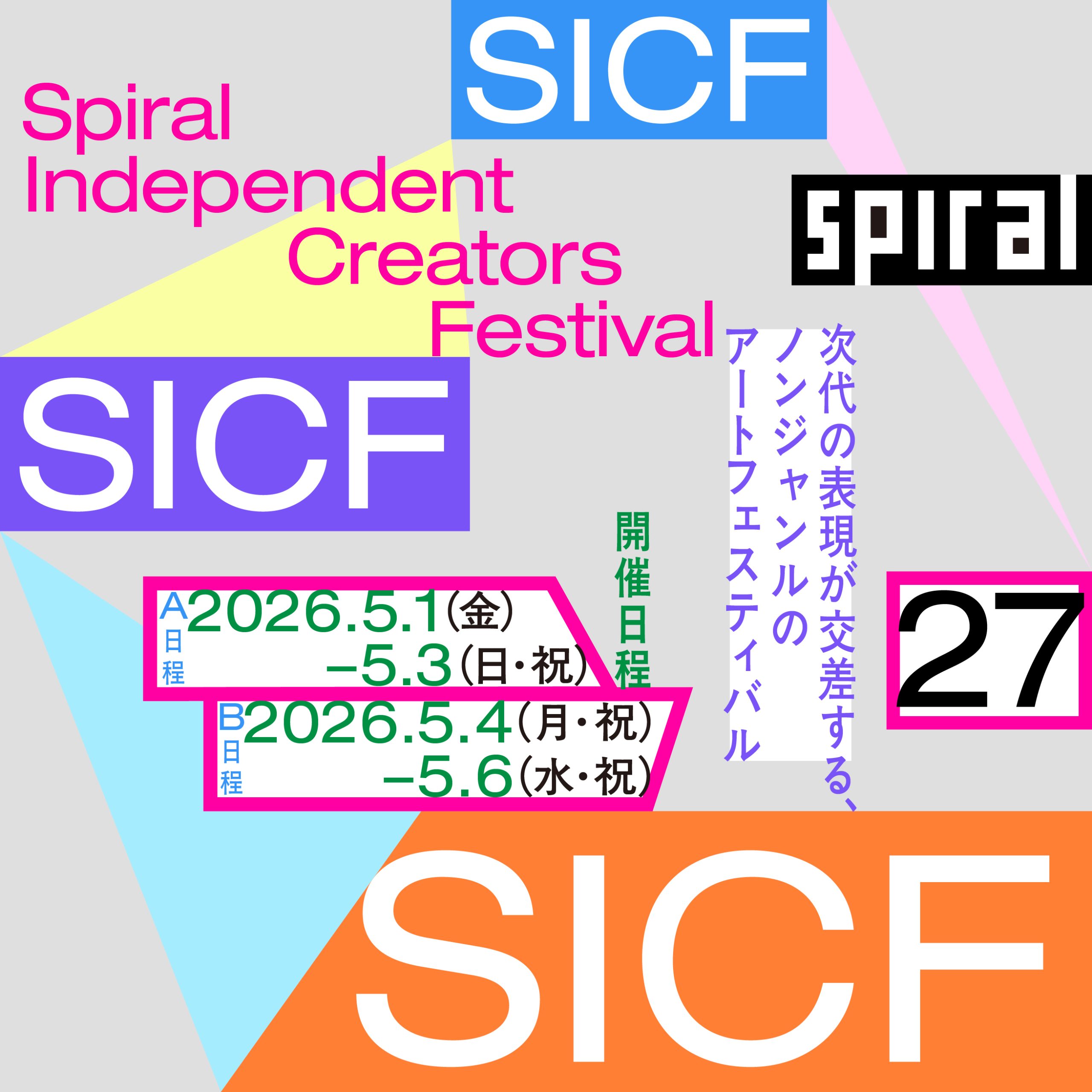 スパイラルは、若手作家の発掘・育成・支援を目的とした公募展形式のアートフェスティバル「SICF27(第27 回スパイラル・インディペンデント・クリエイターズ・フェスティバル)」を、2026年5月1日(金)‒ 6日(水・祝)に開催します。