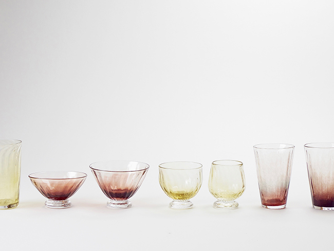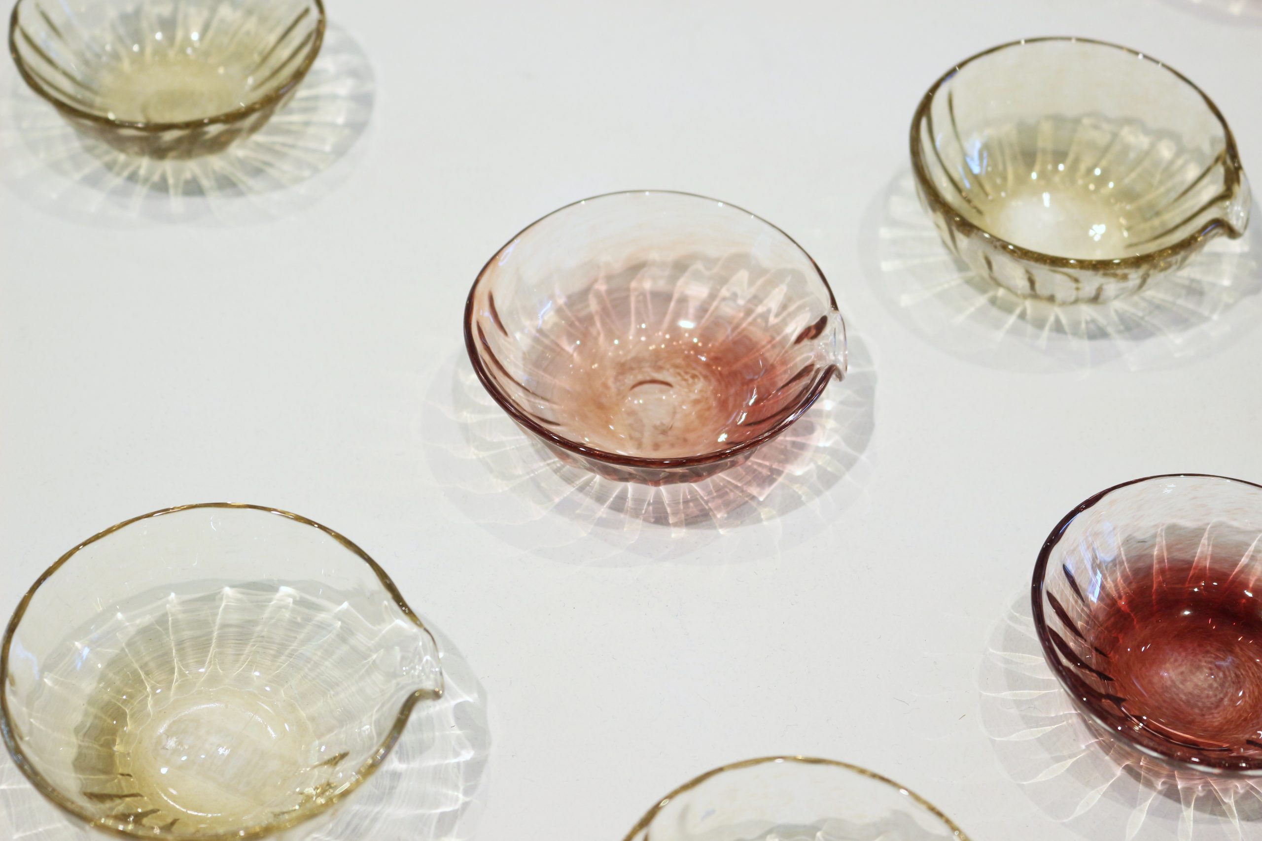 主に、吹きガラスの技法で制作をしているので、型取りのように全て同じサイズを作ることが難しいんです。私自身、あまり器のサイズにこだわってもいなくて。使う人を意識していない訳ではないのですが、──以前はたくさんの人に気に入って欲しくて、使いやすい透明の器や、サイズも4寸が使いやすいって聞いたらその通りつくったりして。でも、だんだんと自分の作品が良いと思えなくなってしまって。