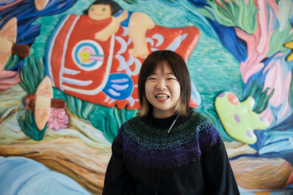 死生観や信仰、民間伝承を背景に、マンガやアニメなど現代的モチーフを融合し、時空を超えた神話的世界を描く。人間と自然の共生や治癒と破壊の循環をテーマに、獣の皮膚や毛を素材に制作。その表現は、ウルトラ怪獣の縫い目や寺山修司作品の極彩色の濃密な昭和の質感に、ポケモンやたまごっちの滑らかな平成的フォルムを重ね、異なる時代感覚を融合させた独自の造形世界を構築している。