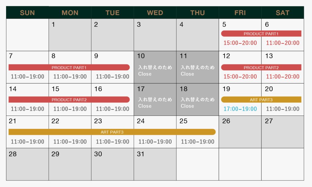 10(水)、11(木)、17(水)、18(木)は入れ替えのためスパイラルガーデンはClose