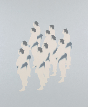 自身の生活を取り囲む情景や、インターネット、雑誌などで得た様々なイメージの中から人を捉え、描いています。連なる行列、行き交う交差点、広場。そこでの私たちはいつも群像の一員です。「個」としてここにいる私は、時に群れとなって声や癖、表情、そんな固有の要素を削ぎ落とされ、フラットな「人」へと変移していく。私たちはそんな「個」と何物でもない「何か」との間を往還する存在だと思う。そんな曖昧な存在としての「人」に関心があり、焦点を当てて制作しています。