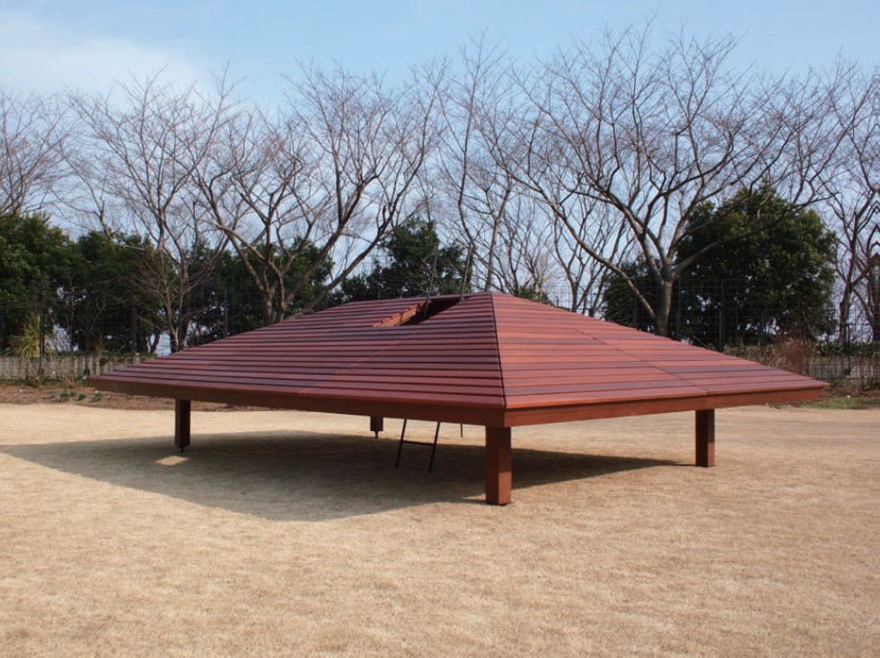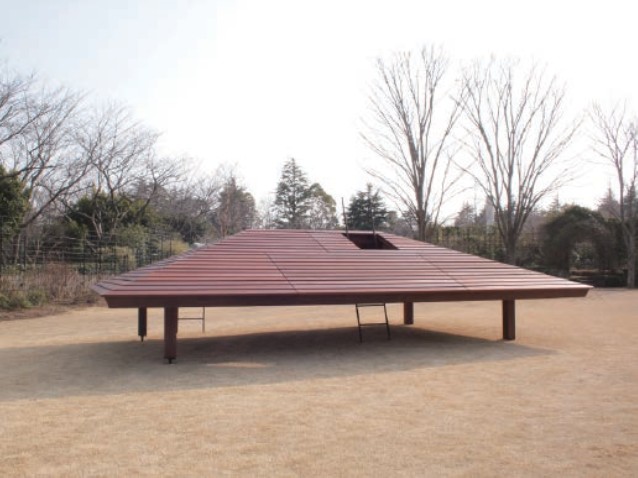 2012年9月に行われた全国都市緑化フェア2012「NEW GREEN STORIES アートが紡ぐ、新たな公園の時間」展への出展作品として、アーティスト鈴木康広氏と(株)中村製作所とのコラボレーションから生まれた「屋根のベンチ」が、ヴァンジ彫刻庭園美術館に新たな常設作品として庭園内に設置されました。